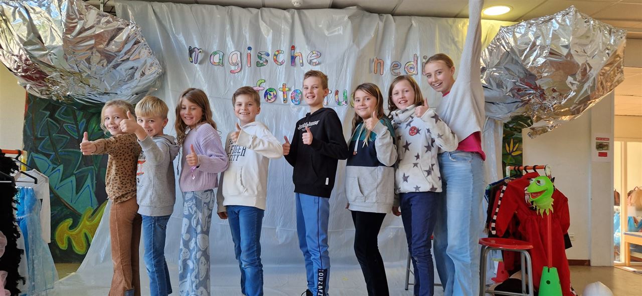 Leerlingenraad 2024-2025 van links naar rechts; Saar, Jelle, Puck, Julian, Mees, Charlotte, Caitlin en Suus.
