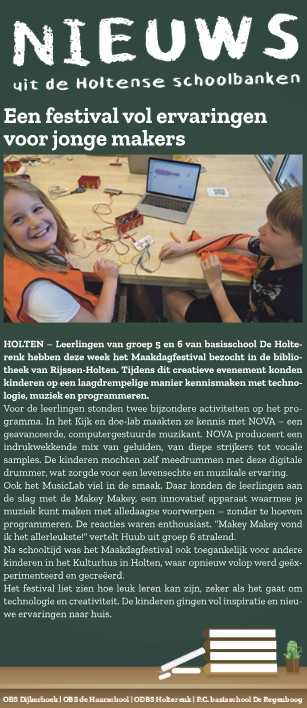 Iedere week publiceert Holtenextra een stukje over een Holtense basisschool. Ook de Holterenk levert nieuwsartikelen aan voor in de krant. De nieuwste uitgave vindt u hieronder.